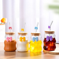 Borosilicaat Glas Melk Koffie Drinkbeker Met Bamboe Deksel En Stro Voor Ijs Serveren